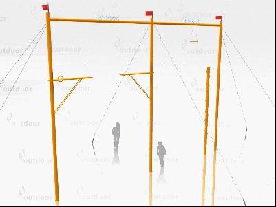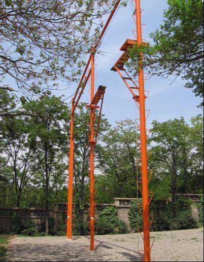 本套拓展器材從心理學角度入手,從天梯之間的距離、器械總體高度等方面都做了非常嚴密的設計,使其更加符合人的心理規律;從器械學角度來看,該設備做了組合型設計,減少了占地面積;