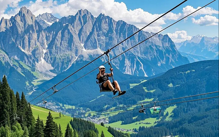 游客穿戴專業安全裝備后,從高處順勢滑行,可體驗御風飛行的失重感與速度感,同時 360° 飽覽雪山群峰、層疊森林與山谷村落的全景,實現 “刺激探險 + 極致觀景” 的雙重體驗。設備采用專業級耐磨鋼索、五點式安全帶與多重緩沖裝置,搭配定期安全檢測機制,全方位保障游玩安全。