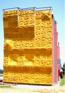 依附墻面這種方法是在現有墻壁上架設鋼架結構及固定連接裝置,再將巖板固定在上面,最后設定攀巖路線,裝上巖塊即可。由于巖壁是附著于固定物上,不容易增加高度或寬度,這是目前最普通的做法,但最主要的考慮,是巖壁結構體除了必須要能夠承受板面結構的重量,以及使用者墜落時產生的沖擊力量外,更要考慮這些相應力,是否會對原有建筑結構造成破壞。若巖壁設在室外則還需要考慮氣候所造成的影響,對鋼架的要求則視巖壁大小及外型變化而定。