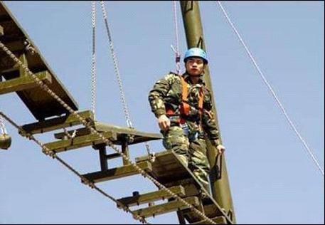 拓展設備操作:1、操作者系好安全帶,攀至蹺板橋的一端,掛好保護鎖。