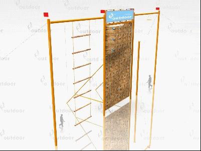 本套拓展器材從心理學角度入手,從天梯之間的距離、器械總體高度等方面都做了非常嚴密的設計,使其更加符合人的心理規律;從器械學角度來看,該設備做了組合型設計,減少了占地面積;
